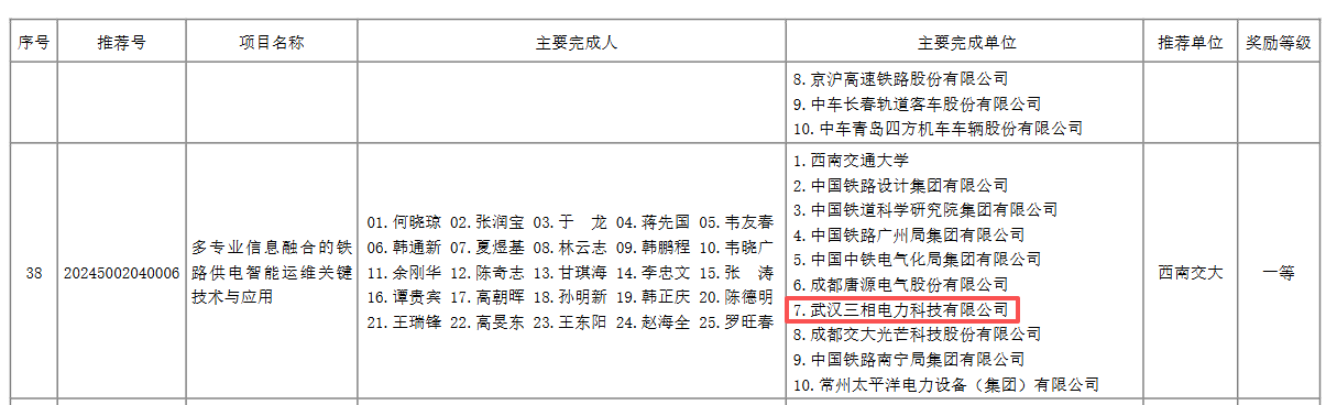 2025-11-12 16:34Recently, the China Railway Society announced the list of winners for the “2024 China Railway Society Science and Technology Award”. The project titled “Key Technologies and Application of Intelligent Operation and Maintenance for Railway Power Supply Based on Multi-disciplinary Information Fusion” in which Sunshine Power participated won the First Prize of Science and Technology Award. Among its key technological achievements was the “Double-ended Traveling Wave Fault Early Warning, Identification and Location Technology for Railway Power Supply Systems”, a technology proposed and jointly implemented by our company.